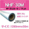 合成紙の保護用に最適な安価なPPラミネート。よりマット感を出したいときにも最適。品番:NHF-30Mサイズ:1280x50m30μ
