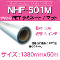 高透明PETラミネート マット。高透明塩ビなどにも使用できるラミネート。保護用ラミネートとして最適なラミネート。 品番:NHF-501M サイズ:1380x50m 50μ