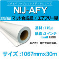 水性顔料用エアフリー糊付き合成紙。耐水性のあるメディア。施工性抜群のエアフリー糊を採用。 品番:NIJ-AFY サイズ:1067x30m 180μ キャノン・エプソン・HPなどの大判水性プリンターに対応。