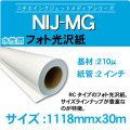 写真画質のセミグロスのフォトペーパー。高画質出力が必要な案件に最適なメディア。 品番:NIJ-MG サイズ:1118x30m 210μ キャノン・エプソン・HPなどの大判水性プリンターに対応。