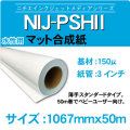 水性顔料用マット合成紙。耐水性があり高発色が特徴。ヘビーユーザー向けの50m巻。品番:NIJ-PSH2サイズ:1067x50m150μ キャノン・エプソン・HPなどの大判水性プリンターに対応。