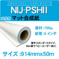 水性顔料用マット合成紙。耐水性があり高発色が特徴。ヘビーユーザー向けの50m巻。品番:NIJ-PSH2サイズ:914x50m150μ キャノン・エプソン・HPなどの大判水性プリンターに対応。