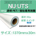 透過性抜群のUV専用PETメディア強粘再剥離糊付き。ウインドウ装飾に最適。品番:NIJ-UTSサイズ:1370x30m50μ 各種UVプリンターに対応。