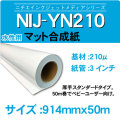 水性顔料用スタンダードマット合成紙。耐水性があり高発色が特徴。ヘビーユーザー向けの50m巻。品番:NIJ-YN210サイズ:915x50m210μ キャノン・エプソン・HPなどの大判水性プリンターに対応。